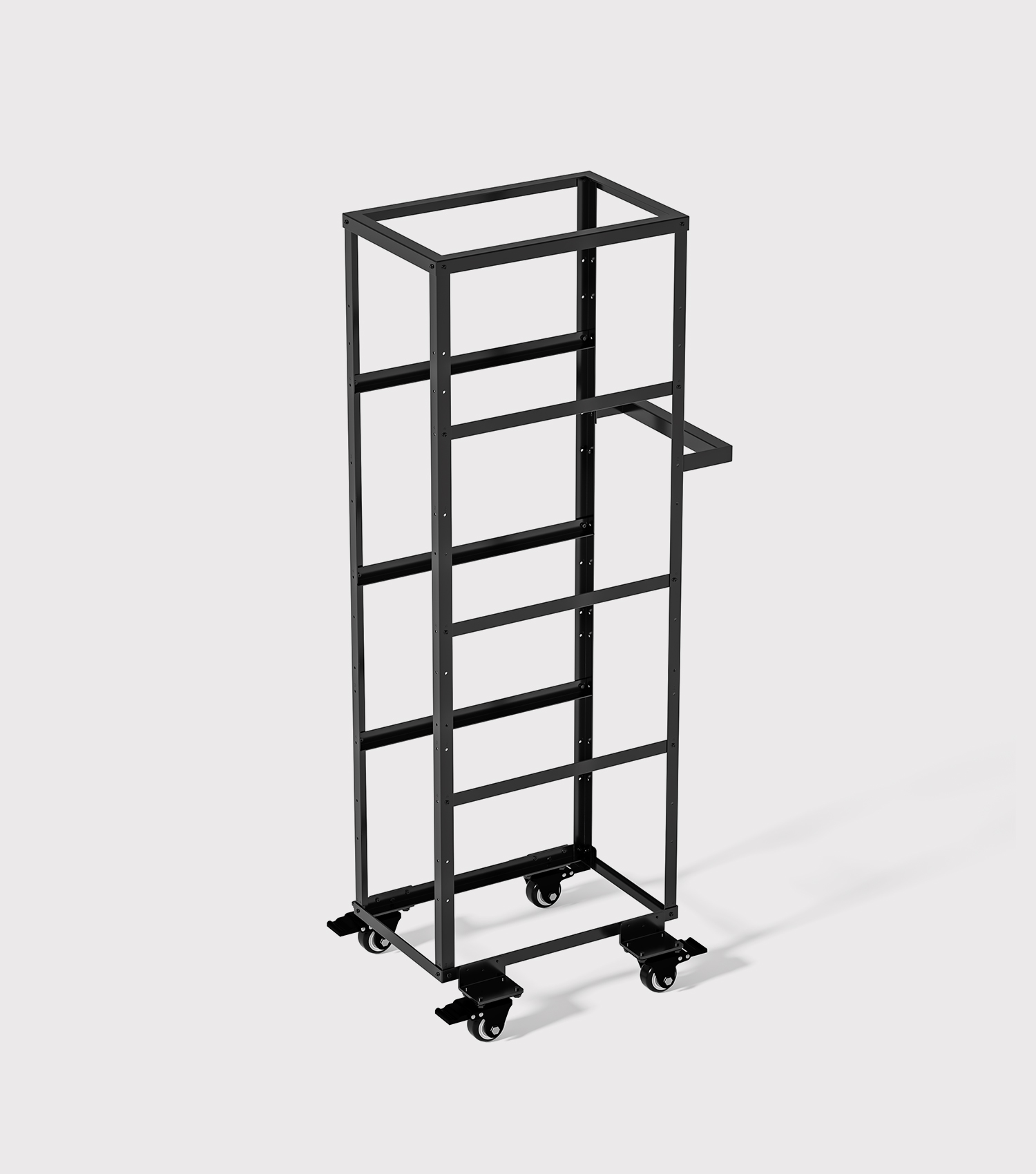 Trolley which can carry contact charging shelf. One trolley carries 3 charging shelves.